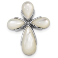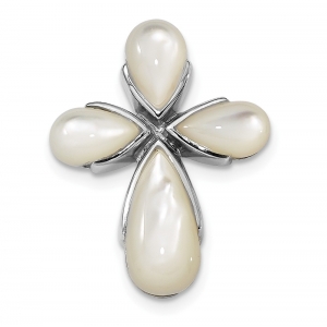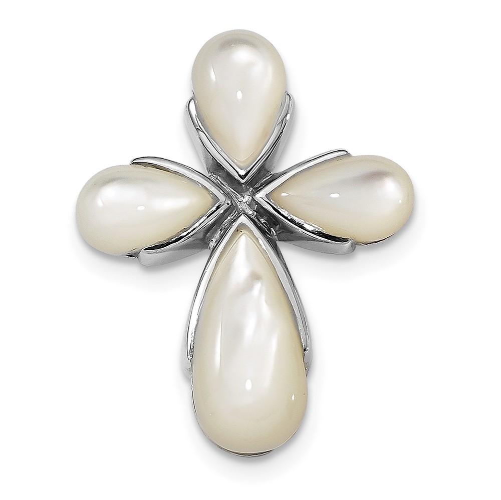 Sterling Silver Rhodium-plated Mother of Pearl Cross Chain Slide