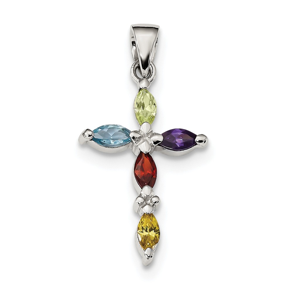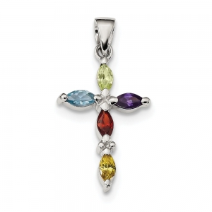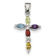Sterling Silver Rhodium-plated Multi-Color CZ Cross Pendant