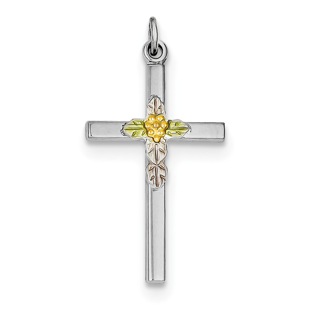 Sterling Silver Rhodium-plated Polished Epoxy & Gold-plated Cross Pendant