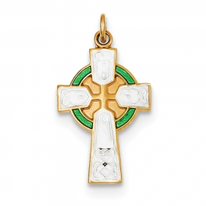 Sterling Silver Rhodium-plated Polished/Gold-plated Epoxy Cross Pendant