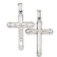 Sterling Silver Rhodium-plated Reversible Crucifix Pendant