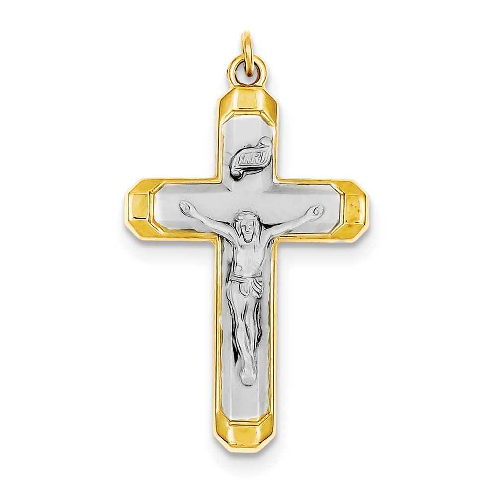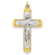 Sterling Silver Rhodium-plated Satin/Polished Vermeil Corpus Cross Pendant