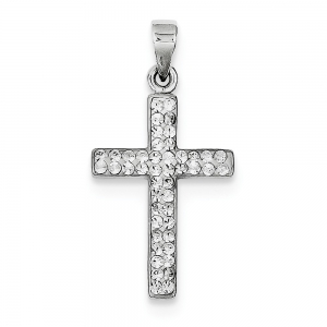 Sterling Silver Rhodium Plated Stellux Crystal Cross Pendant