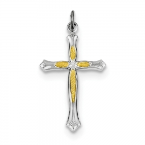 Sterling Silver Rhodium-plated and Vermeil Cross Pendant