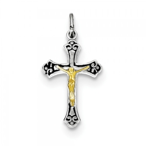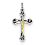 Sterling Silver Rhodium-plated & Vermeil Crucifix Charm
