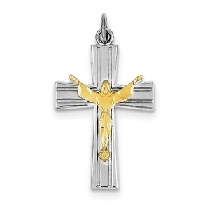 Sterling Silver Rhodium-plated & Vermeil Crucifix Charm
