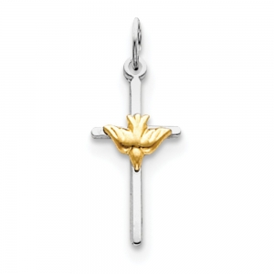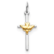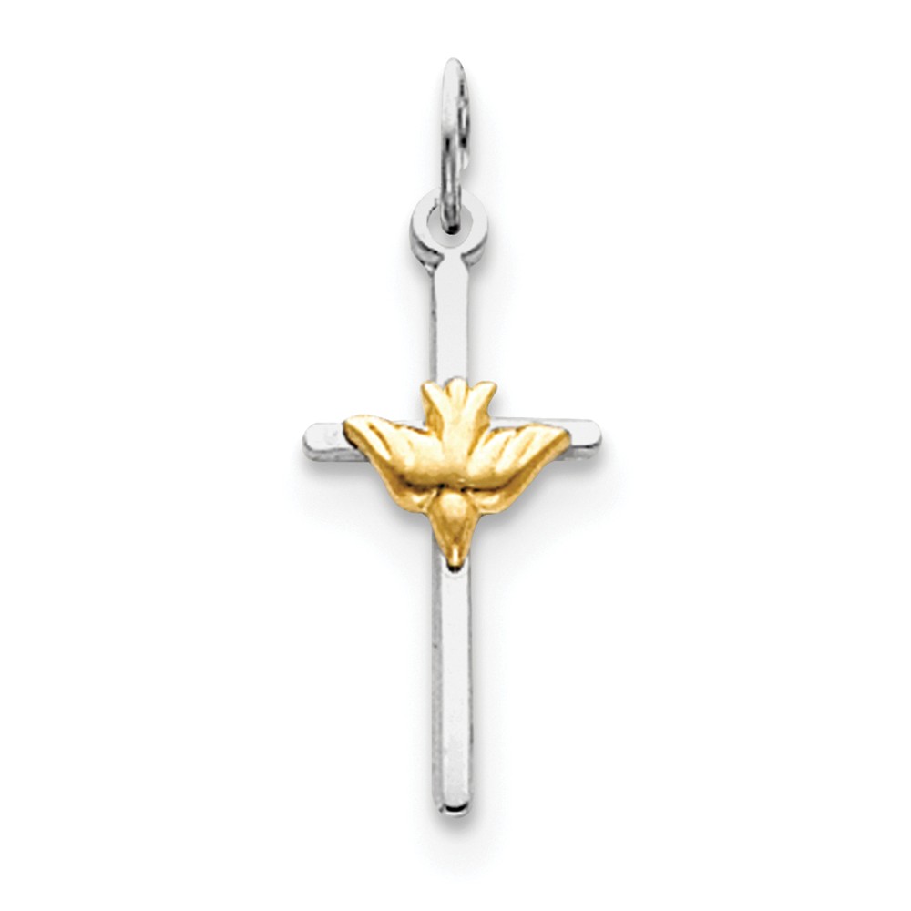 Sterling Silver Rhodium-plated & Vermeil Dove Cross Charm