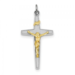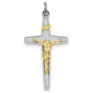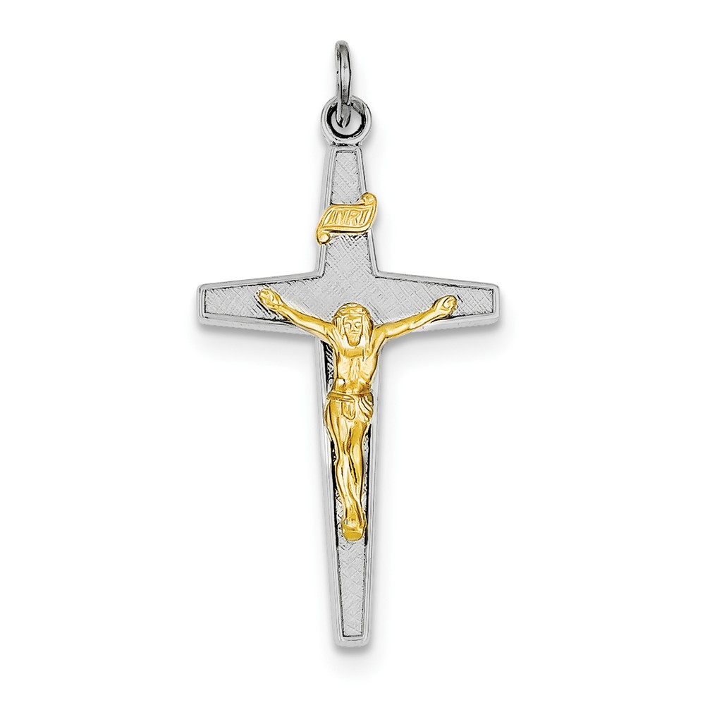Sterling Silver Rhodium-plated & Vermeil INRI Crucifix Charm