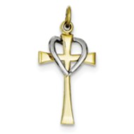 Sterling Silver Rhodium-plated & Vermeil Polished Cross & Heart Pendant