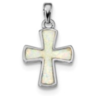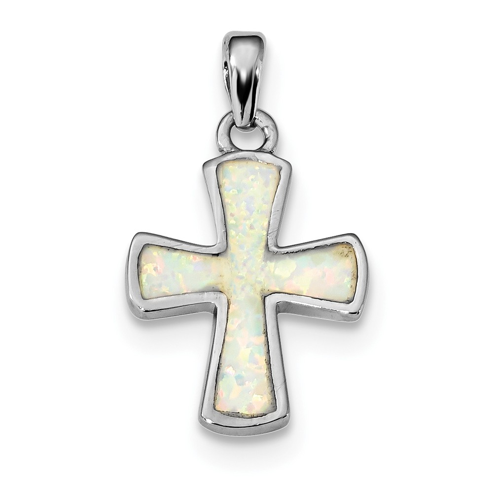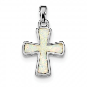 Sterling Silver Rhodium-plated White Created Opal Cross Pendant