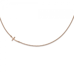 Sterling Silver Rose Gold-plated Small Sideways Curved Cross Necklace