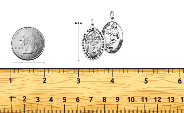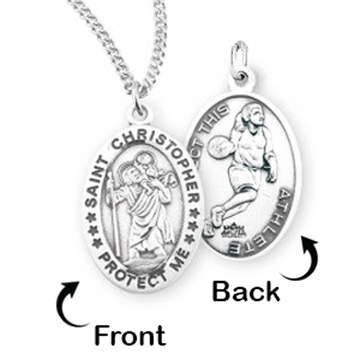 Sterling Silver Saint Christopher Double Sided Female Basketball Oval Religious Medal w/ Chain