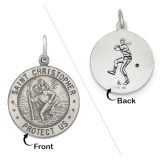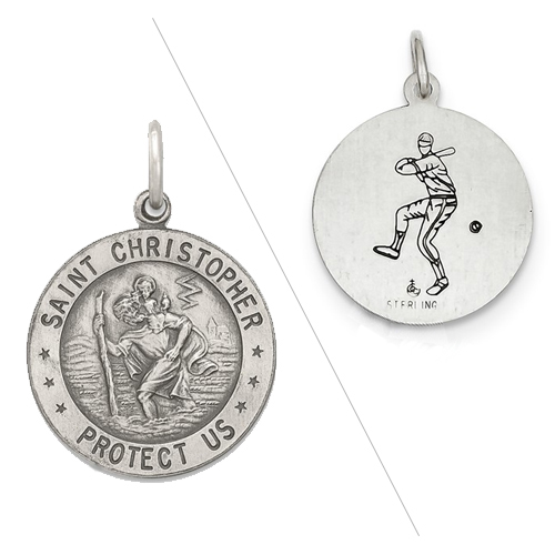Sterling Silver Saint Christopher Double Sided Baseball Round Religious Medal