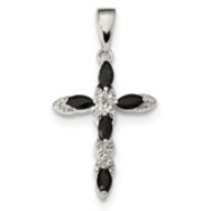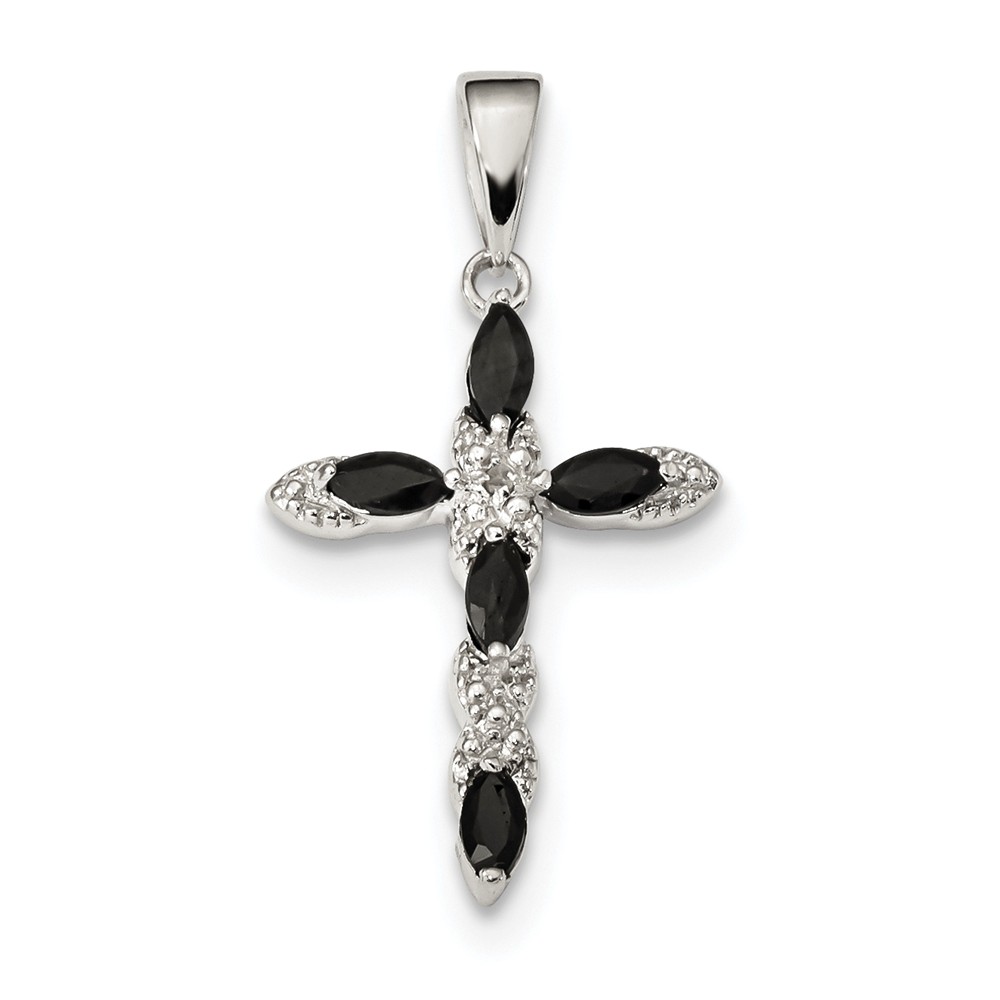 Sterling Silver Sapphire & Diamond Cross Pendant