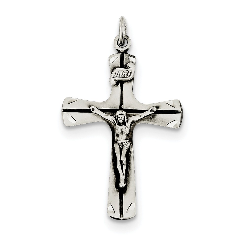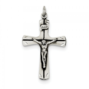 Sterling Silver Satin Antiqued Crucifix Pendant