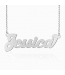 This horizontal high polished script nameplate is available in Solid .925 Sterling Silver, Solid 14k Yellow