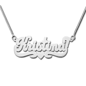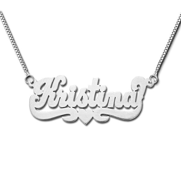 The most popular chain for a woman is 18"Average Size 2 inches Wide x 3/4 inch Tall (depending on Name Length) in Genuine Sterling Silver