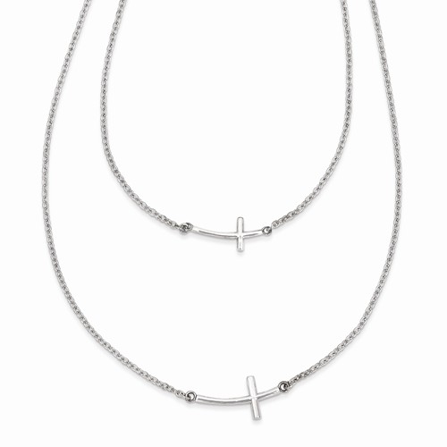 Sterling Silver Small and Large Sideways Curved Cross 2-Layer Necklace