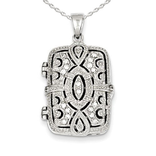 This Rectangle Locket is .925 Solid Sterling Silver and holds 2 photos. The front of this locket is beautifully designed with a twist of Silver and Cubic Zirconia. The inside and reverse side of this stunning locket can be engraved with a personal message. This is the perfect gift for any occasion.