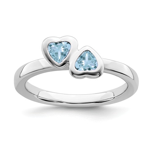 Sterling Silver Stackable Expressions Aquamarine Double Heart Ring