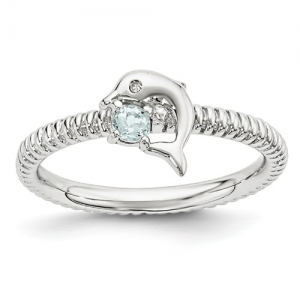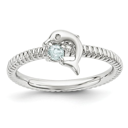 Sterling Silver Stackable Expressions Aquamarine and Diamond Dolphin Ring