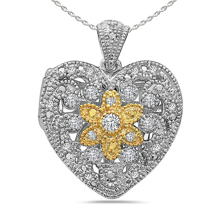 What is on the front of the locket? Hand Engraved w/ Cubic Zirconia