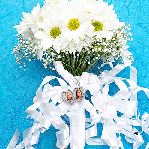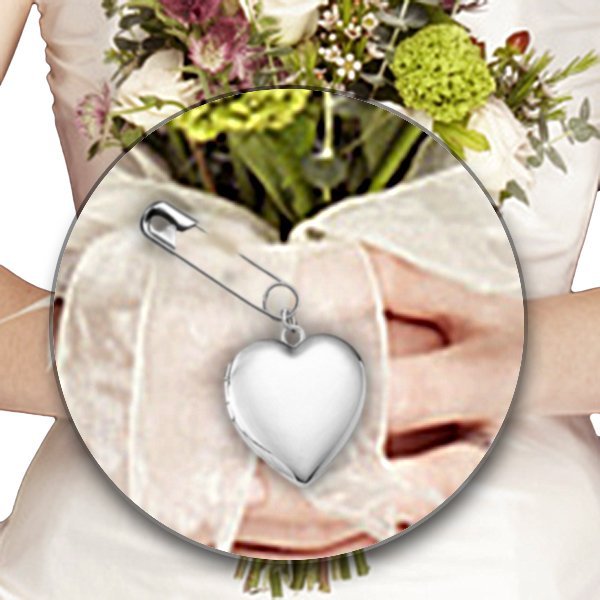 Wedding Bouquet Heart Photo Locket With Safety Pin