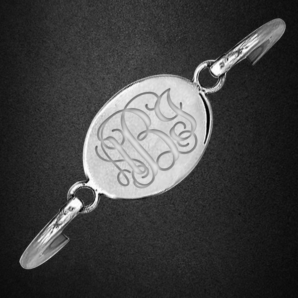 Each Sterling Silver ID Bracelet Can be Engraved on the Front & Back Perfect for Engraving a Monogram Plate Measures Over 1 1/4 Inch Wide x Under 1 Inch Tall This is a Slip On Bangle Bracelet Made to Fit Mostly Anyone