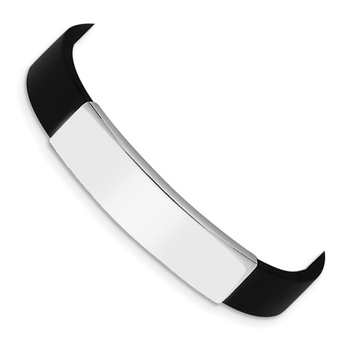 Rubber Bracelet measures 7 Inches with a Sterling Silver Plate Measures 1 1/3 inch Wide x 1/3 Inch Tall