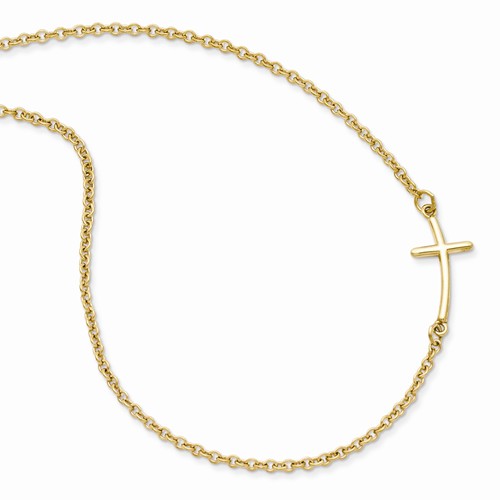 Sterling Silver Yellow Gold-plated Small Sideways Curved Cross Necklace