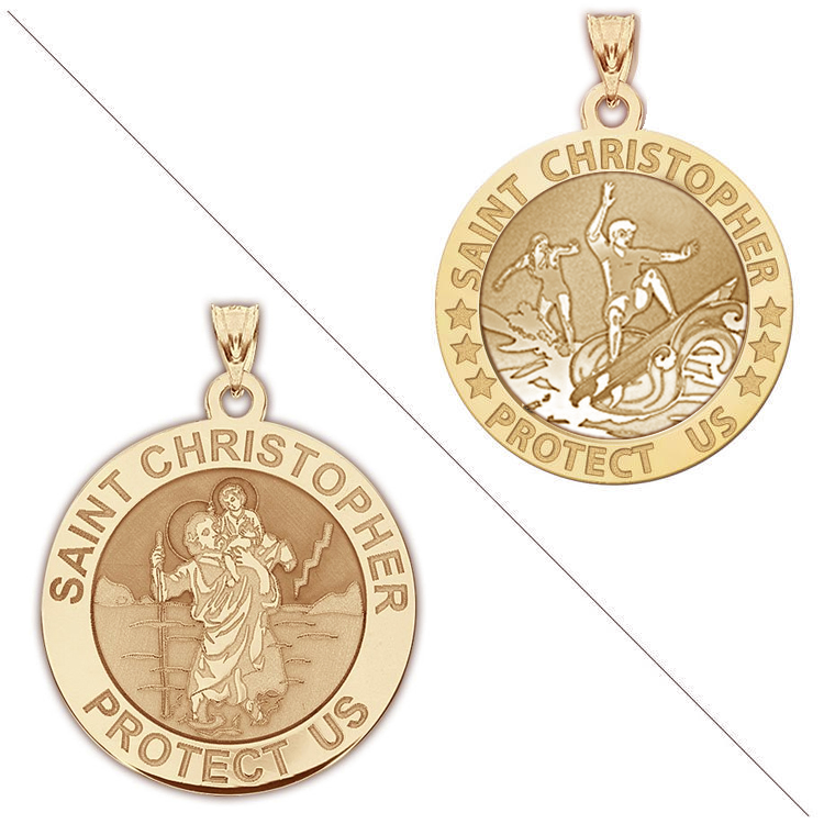 Surfing or Surf (Boy & Girl) - Saint Christopher Doubledside Sports Religious Medal "EXCLUSIVE"