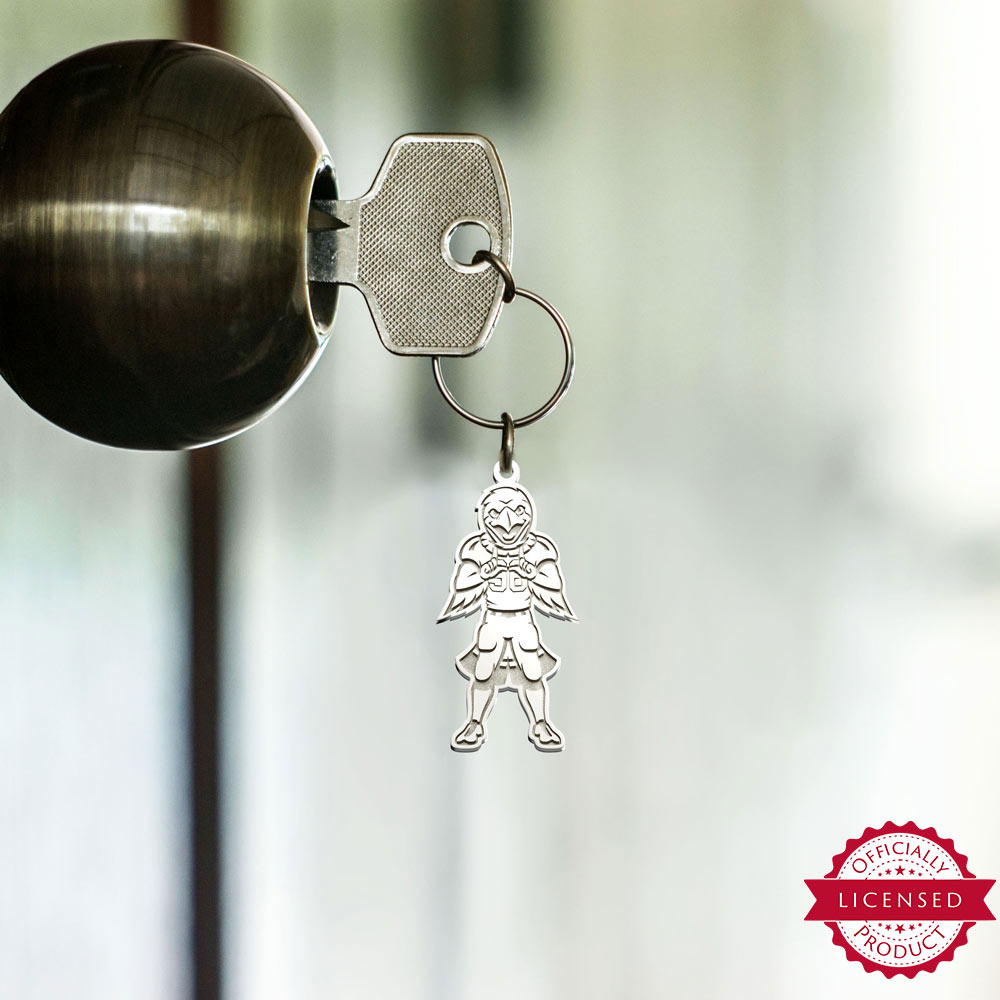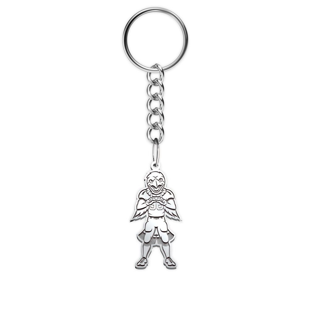 What better way is there to display your team pride than with this keychain featuring the Swoop, the Red-Tailed Hawk, mascot for the University of Utah? This keychain is made of solid sterling silver and the logo is etched deep. The keychain can be engraved on the reverse side with a personalized message, names, dates, a monogram,