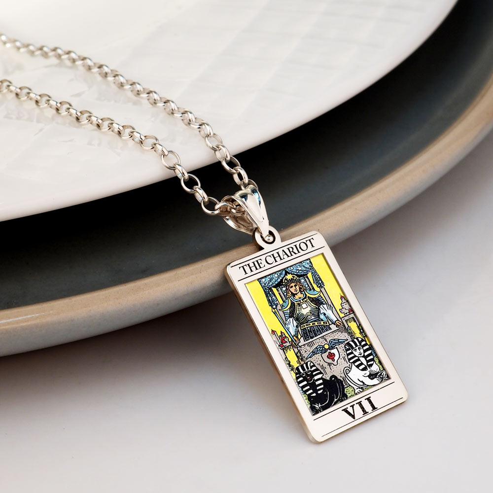 The Chariot (VII) is the seventh trump or Major Arcana card in most traditional Tarot decks. It is used in game playing as well as in divination The chariot is one of the most complex cards to define. On its most basic level, it implies war, a struggle, and an eventual, hard-won victory; either over enemies, obstacles, nature, the beasts inside you, or to just get what you want. But there is a great deal more to it.