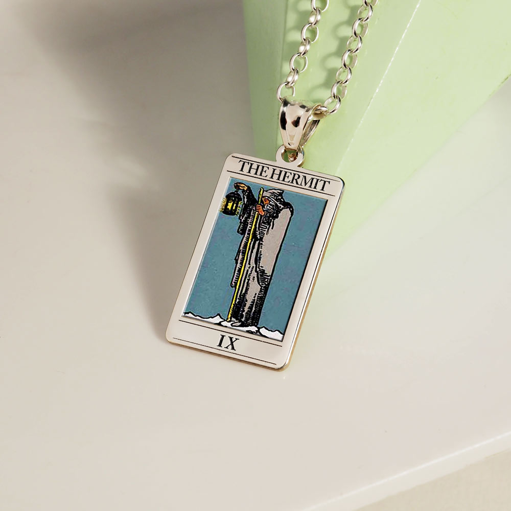 The Hermit (IX) is the ninth trump or Major Arcana card in most traditional Tarot decks. It is used in game playing as well as in divination. The Hermit has internalized the lessons of life to the point that he is the lesson. The Hermit, as a kind of shamanistic hero, has made the complete journey both the withdrawal and the return. As Joseph Campbell said, A hero ventures forth from the world of common day into a region of supernatural wonder: fabulous forces are there encountered and a decisive victory is won: the hero comes back from this mysterious adventure with the power to bestow boons on his fellow man. (The Hero with a Thousand Faces) There are two possible ways this card can be interpreted: First, the need to withdraw from society to become comfortable with himself. Second, the return from isolation to share his knowledge with others.