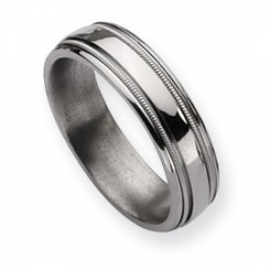 Titanium Grooved and Beaded 6mm Polished Wedding Band