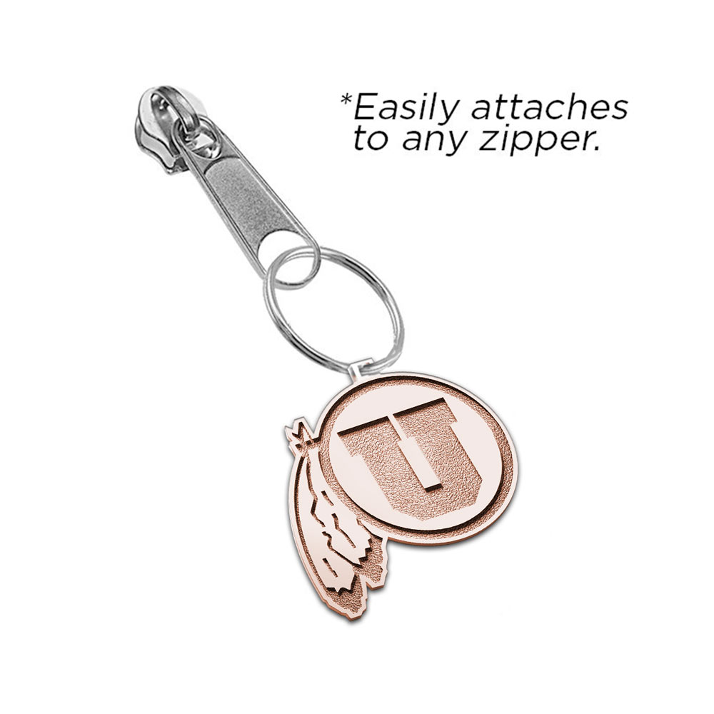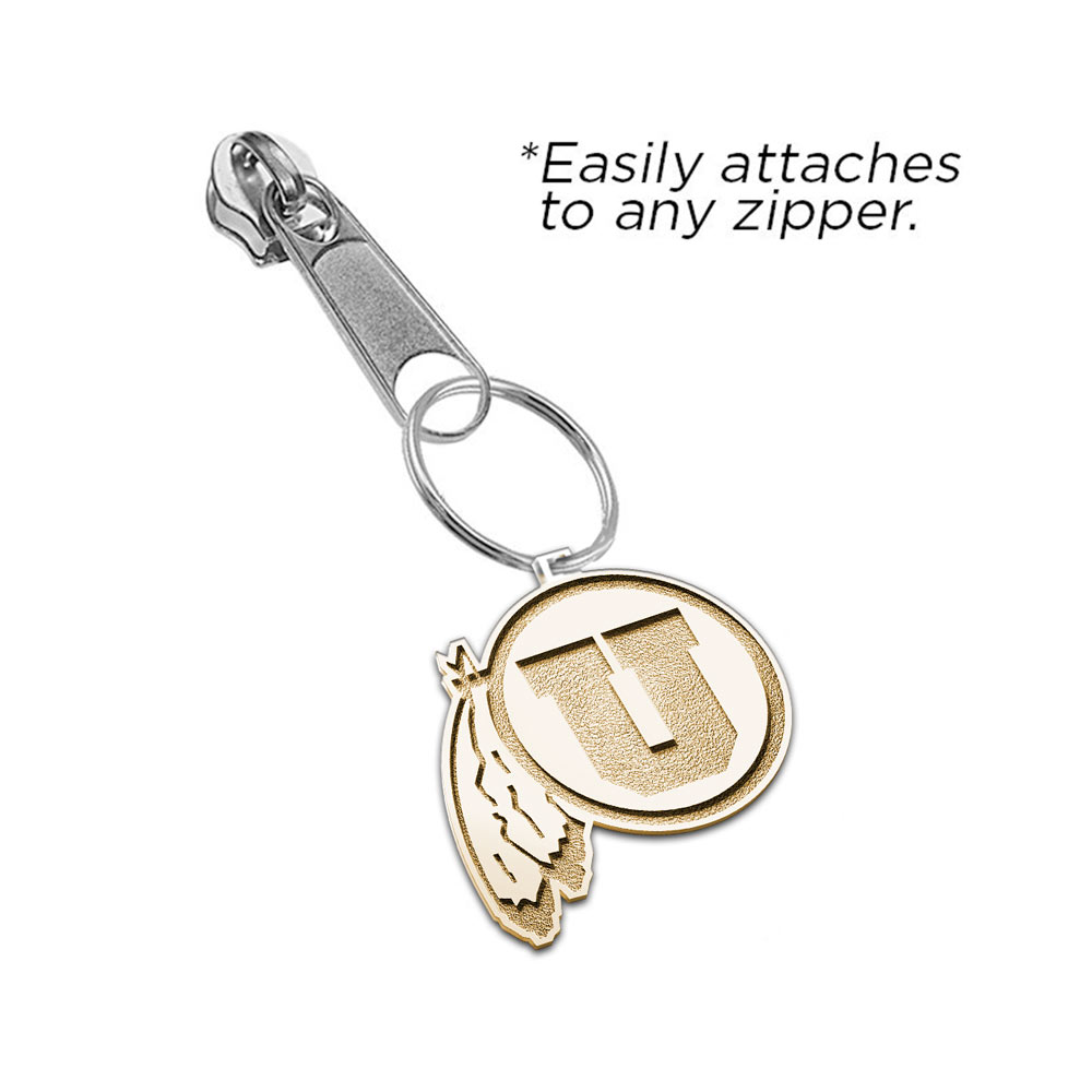 What better way is there to display your school pride than with this University of Utah zipper pull? This zipper pull is made of solid sterling silver and the logo is etched deep with a high polished finish. The pull can be engraved on the reverse side with a personalized message, names, dates, a monogram, anything you can think of.
