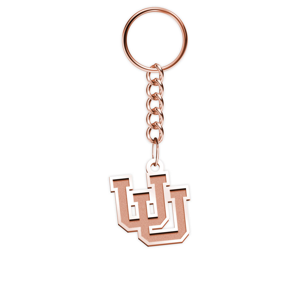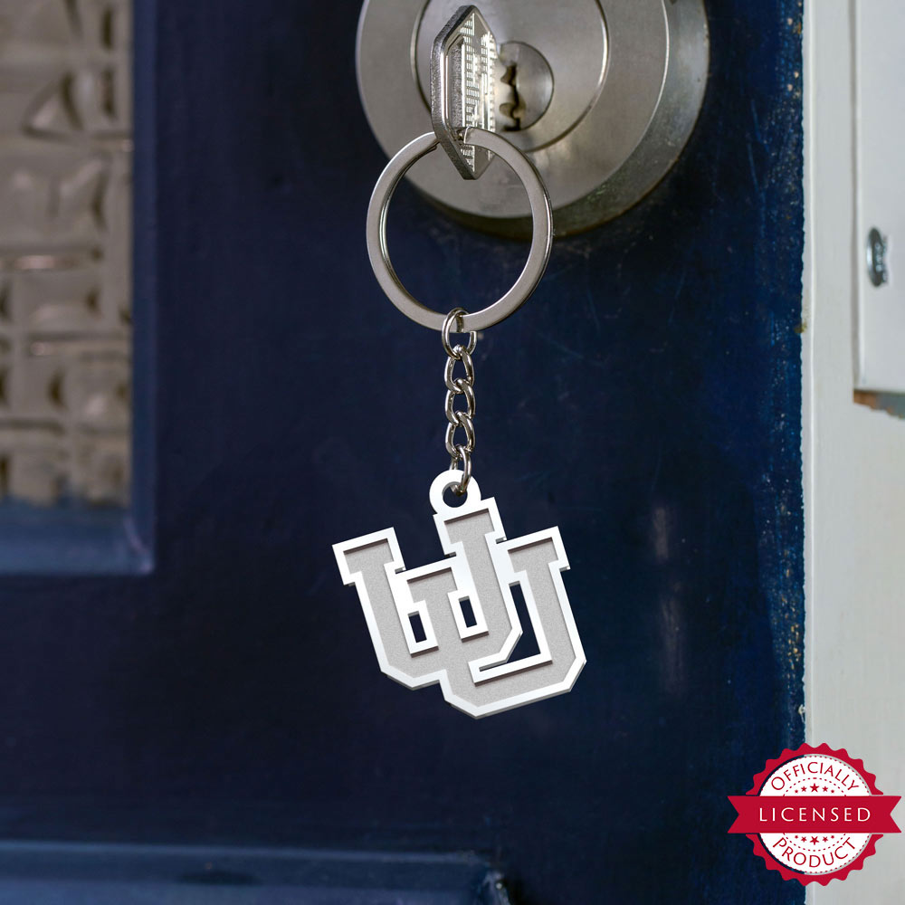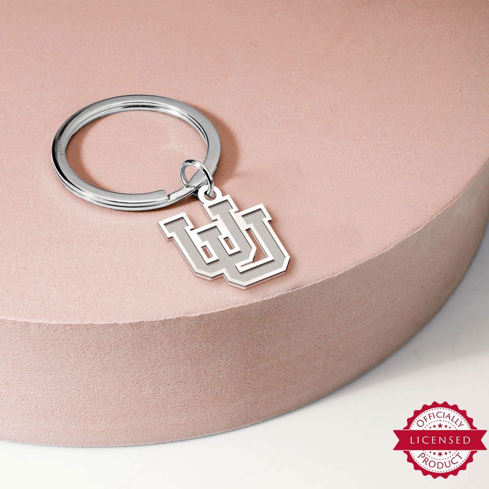 What better way is there to display your team pride than with this keychain featuring the University of Utah's signature intertwined U? This keychain is made of solid sterling silver and the logo is etched deep. The keychain can be engraved on the reverse side with a personalized message, names, dates, a monogram,