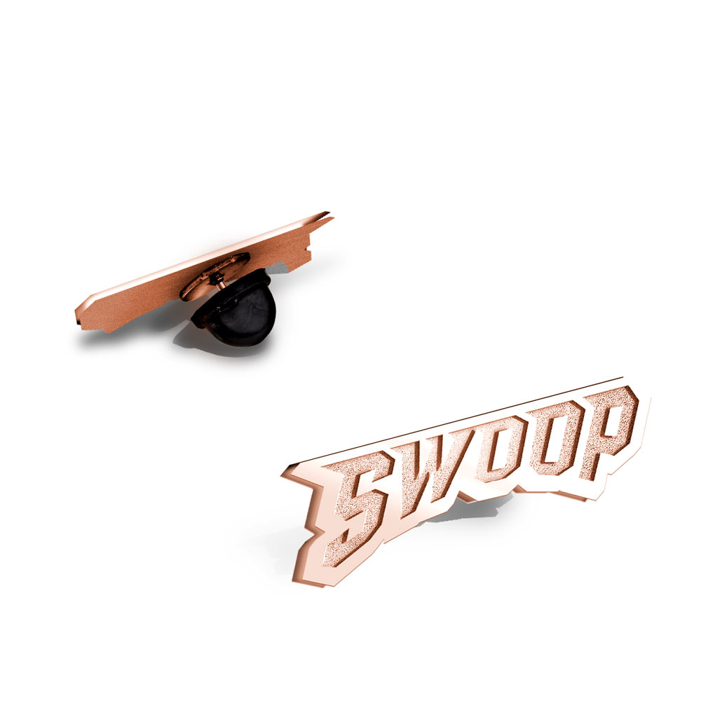 sterling silver and the logo is etched deep with a high-polish finish. The pin can be engraved on the reverse side with a