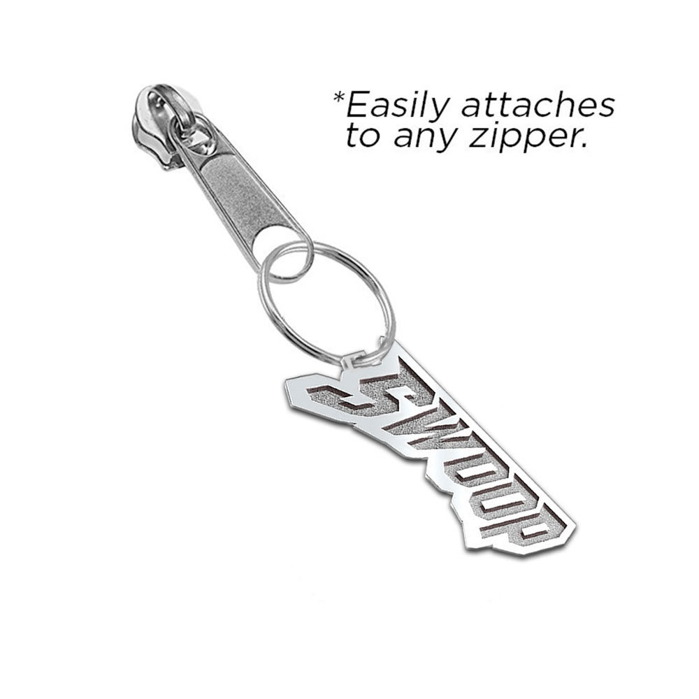 made of solid sterling silver and the logo is etched deep with a high polished finish. The pull can be engraved on