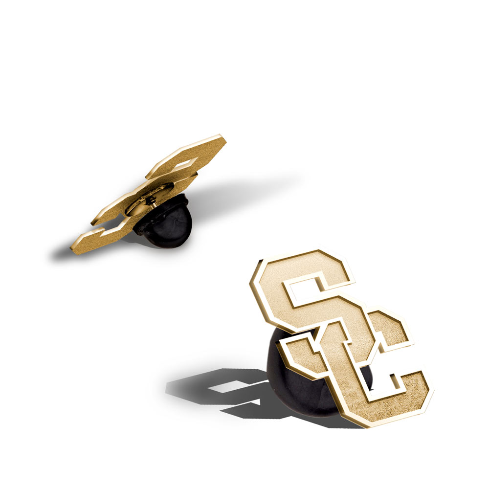 What better way is there to display your school pride than with this University of Southern California pin? This pin is made of solid sterling silver and the logo is etched deep with a high-polish finish. The pin can be engraved on the reverse side with a personalized message, names, dates, a monogram, anything you can think of.