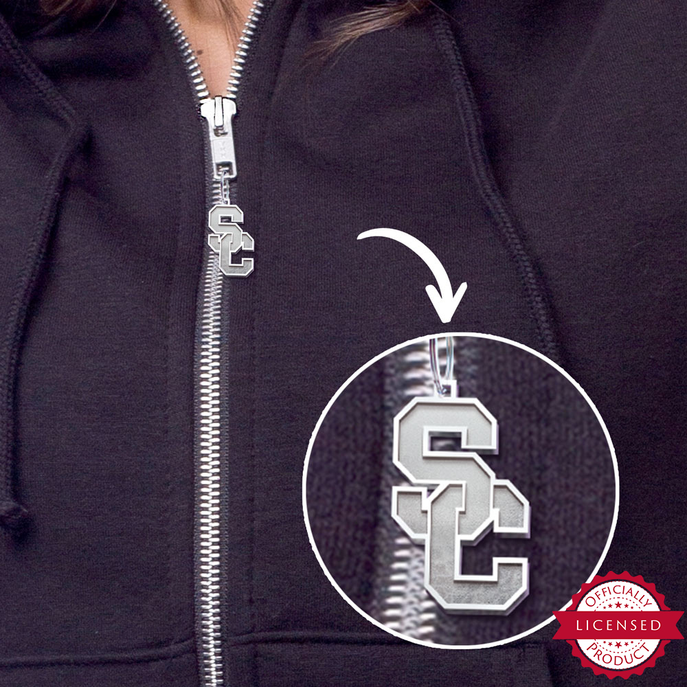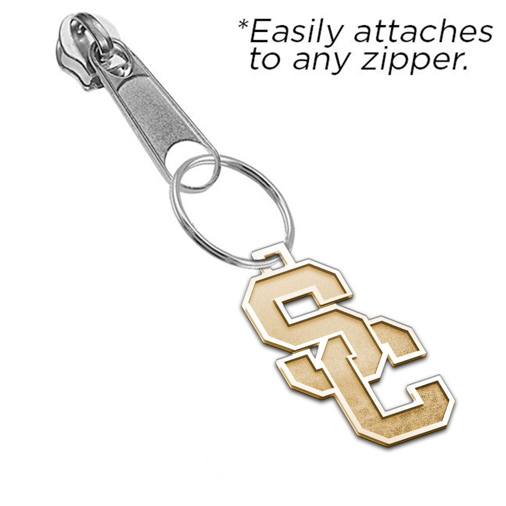 What better way is there to display your school pride than with this University of Southern California zipper pull? This zipper pull is made of solid sterling silver and the logo is etched deep with a high polished finish. The pull can be engraved on the reverse side with a personalized message, names, dates, a monogram, anything you can think of.