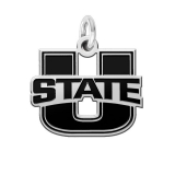 Utah State Aggies Charm made in solid sterling silver with antiqued background. Utah State Aggies charms can be worn on a chain or dangle them from a bracelet. Our jewelry has the finest detail and are the highest quality of any Utah State Aggies charm or pendant available.