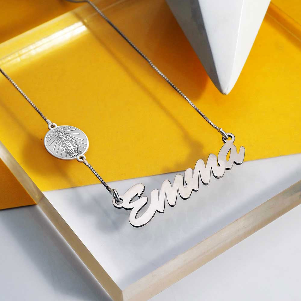 Virgin Mary (Miraculous Medal) Custom Name Necklace