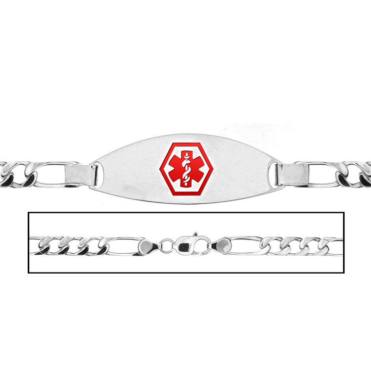 Solid 14K White Gold Women's Figaro Link Medical ID Bracelet