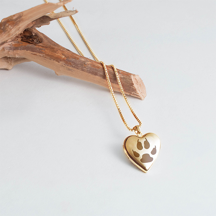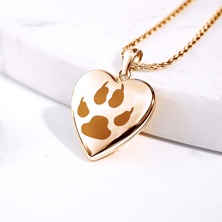 14k Gold Filled Cat Paw Print Heart Photo Locket