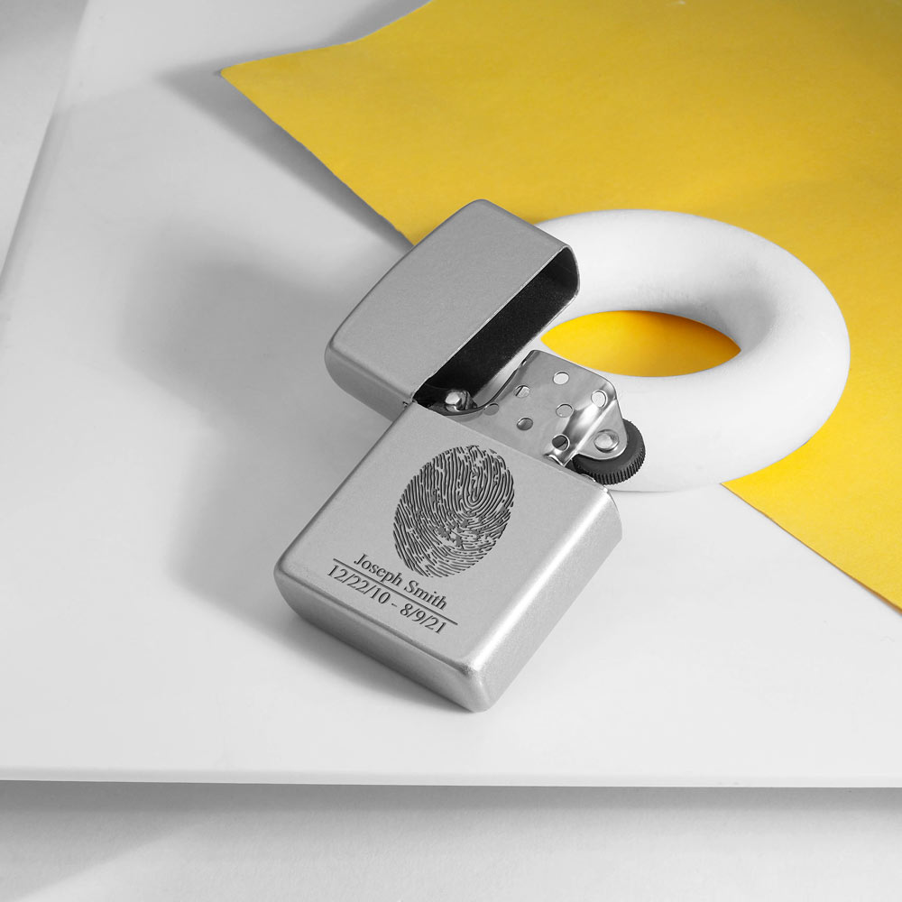 FingerPrint Engraving is scratch and water resistant and included in the price. Upload, E-mail/Fax, or Mail in your FingerPrint