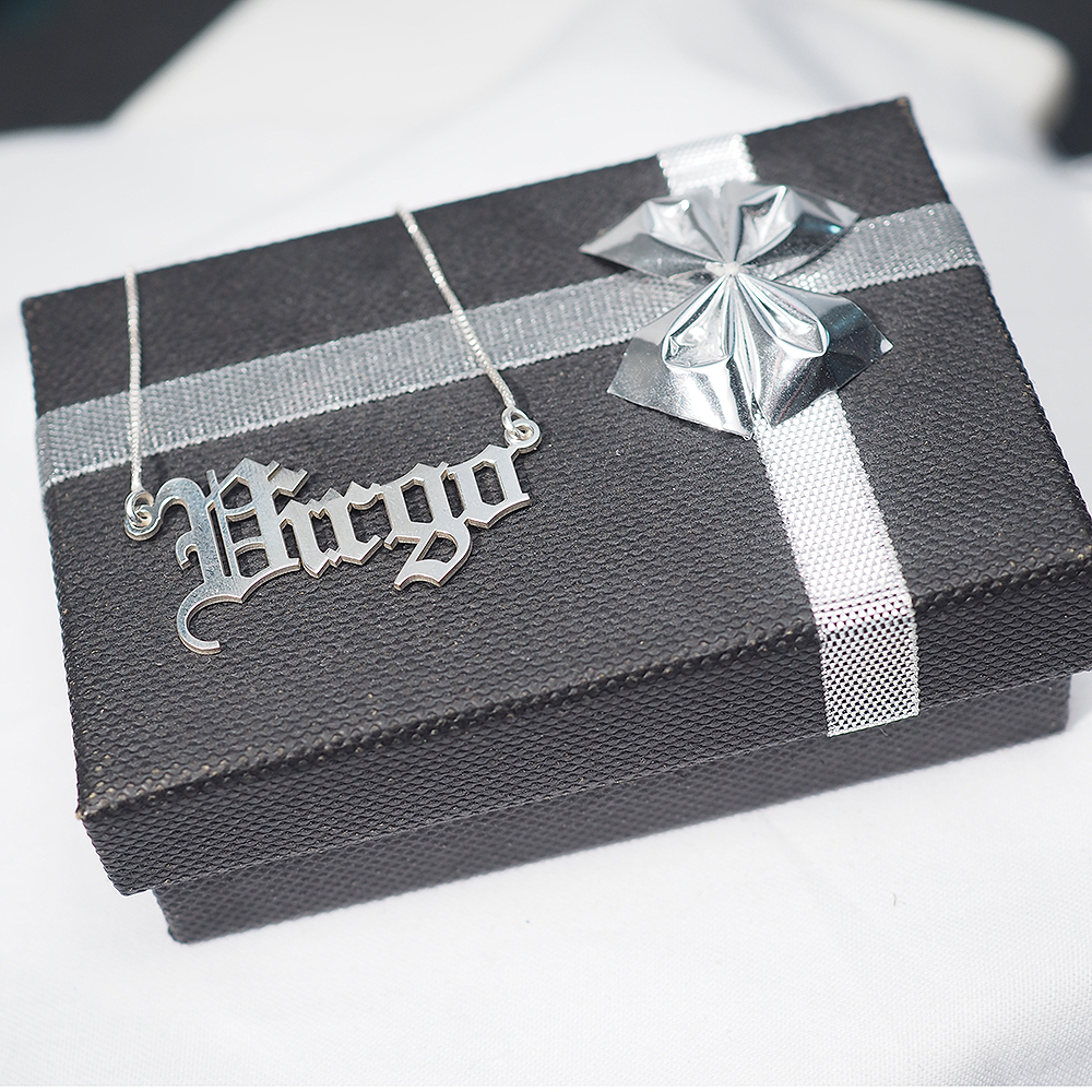 Nameplate can measure up to 1.25 inches wide depending on Star Sign chosen.